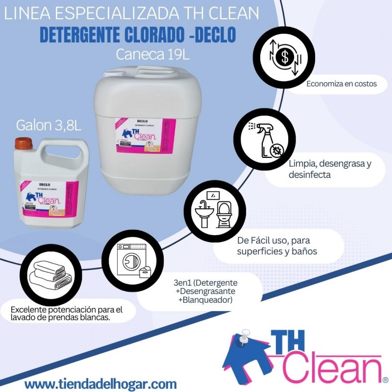 2. DESCRIPCIÓN DECLO es un limpiador que reúne en un solo producto, el poder de limpieza de sus agentes detergentes, más la fuerza blanqueadora y desinfectante del cloro. Se recomienda para la limpieza, desinfección y blanqueado de ropa blanca, artefactos de comedores, cocina, baños y superficies lavables.
